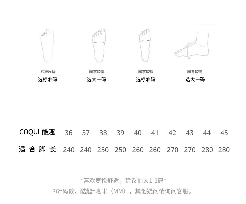36(240), 37(245), 38(250), 39(255), 40(260), 41(270), 42(275), 43(280), 44(285), 45(290)