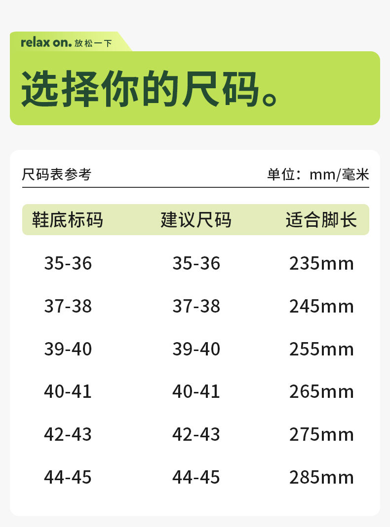 35/36(235), 37/38 (245), 39/40 (255), 40/41(265), 42/43(275), 44/45(285)